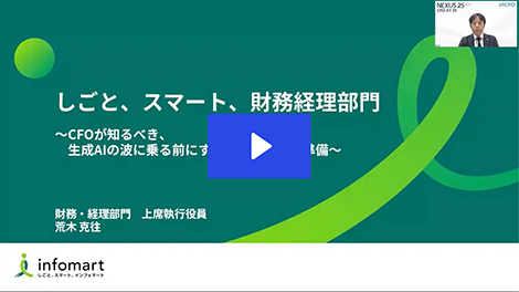 しごと、スマート、財務経理部門 急速に進化する生成AIは、財務経理領域において、業務の効率化、精度の向上、コスト削減、そして戦略的業務へのシフトを実現する大きな可能性を秘めている。 この変化の波を的確に捉え、自社の競争力強化につなげていくためには、社内の業務プロセスのみならず、取引先とのやり取りを含めた財務オペレーション全体をデジタル化しておくことが不可欠である。 本セミナーでは、将来的な生成AIの活用を見据え、財務経理業務のデジタル化に取り組んだ当社の具体的な事例を紹介する。 荒木 克往 氏 |