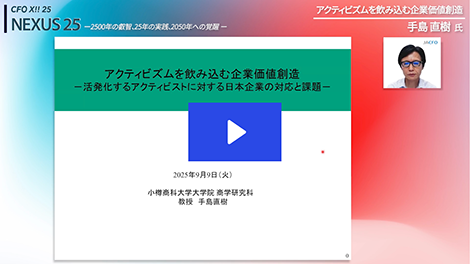 アクティビズムを飲み込む企業価値創造 日本は世界第二位のアクティビストである。国内の2024年のアクティビスト・キャンペーン数は、欧州各国の合計を上回る水準となっているほどだ。上場企業にとって、アクティビズムはもはや対岸の火事ではない。そこで本セッションでは、アクティビストのターゲットとなる前に企業が取るべきアクションを「アクティビズム・インテグレーション」と定義し、ケースを取り上げながら具体的に解説する。 手島 直樹 氏 |