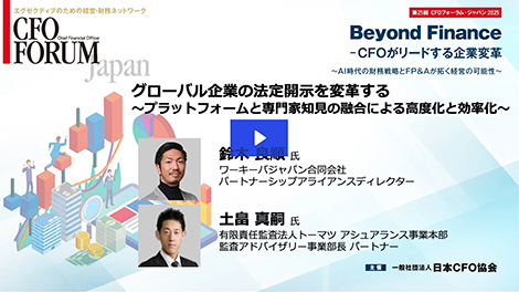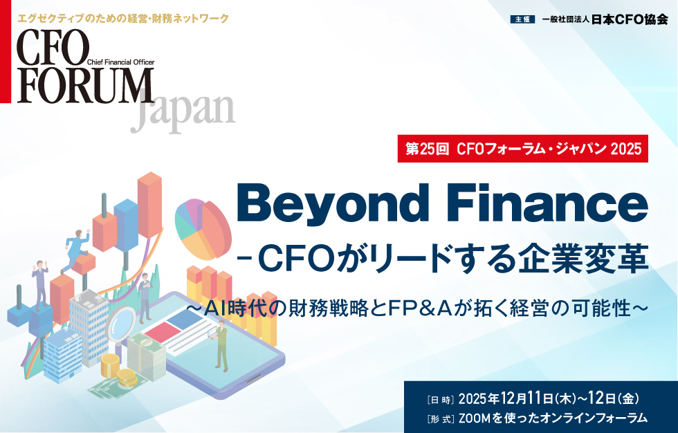 本フォーラムでは、企業改革の最前線で培われた実践知、AI・デジタル技術を活用した財務変革、そして先進的なFP&A手法まで、CFOが企業変革をリードするための具体的な知見と経験を共有します。