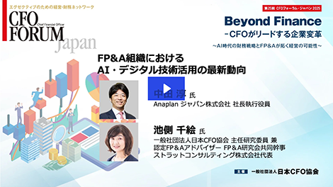 FP&A組織におけるAI・デジタル技術活用の最新動向 日本企業のCFOやFP&A組織と日々接点を持つ中で強く感じるのは、テクノロジーやAIへの高い関心と、旧態依然とした業務実態との間に存在する大きなギャップである。FP&A組織はテクノロジーの力を活用することで、もっと創造的で戦略的な役割を果たせるはずだ。 本講演では、日本におけるFP&A研究の第一人者である池側千絵氏と、FP&Aデジタル化のデファクトスタンダードであるAnaplanの中田淳が、国内外におけるAI・デジタル技術活用の最前線について対談する。