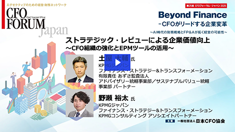 ストラテジック・レビューによる企業価値向上 ストラテジック・レビューは、同意なき買収やアクティビストによる経営介入リスクへの予防・対応にとどまらず、平常時から資本市場の視点で自社戦略を見直すプロセスである。本セミナーでは、その実施に不可欠なCFO組織の再定義とEPMツールの活用により、迅速かつ質の高い意思決定を実現し、レビューで抽出された課題に対応して企業価値を高める方法を解説する。
